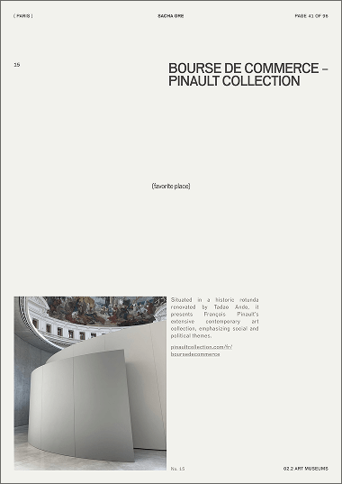 А тщательно собранная коллекция музеев, архитектурных шедевров, галерей, библиотек и культурных мест, созданная дизайнером. Он основан на многолетнем опыте, личных открытиях и искренней любви к Парижу.